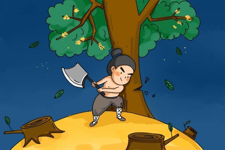 吴刚伐桂:宫中有一棵桂花树,高五百丈,所谓“月中有丹桂,自古以来发天香”,就是指的这棵桂树它生长很快,不砍月宫将容纳不下。玉帝就命一个修仙时犯了错误的人——吴刚,天天去砍,可是随砍随合,即砍树的创伤很快愈合,隐喻着月亮的阴晴圆缺,意味着月亮的再生和永生。