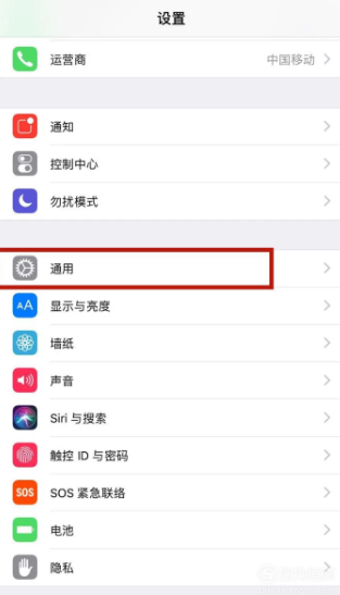 2、打开“设置”后,向下滑动,找到并点击“通用”如图所示。
