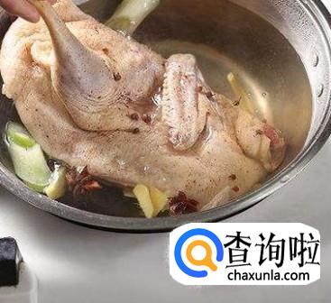 准备一只整鸭,将鸭子洗净,鸭脚、鸭头切掉,用盐将鸭子全身都擦一遍,然后将酱油、八角、花椒、姜、盐、料酒、桂皮放入,涂抹均匀,放到冰箱里腌制24小时。