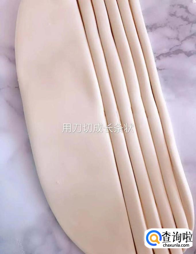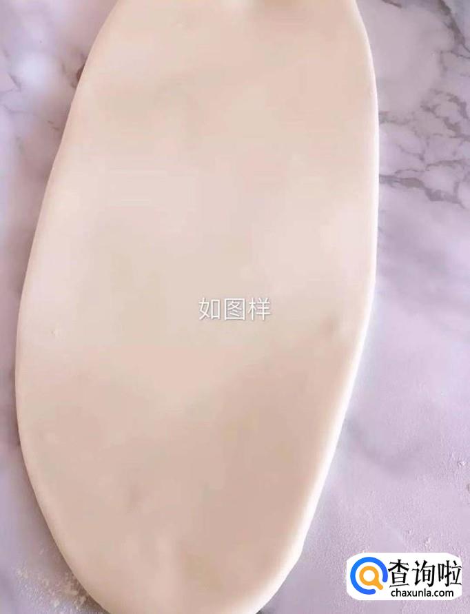 接着用擀面杖擀面团擀成薄饼,如下图所示。