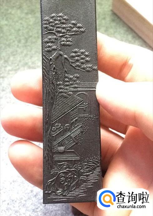 拿着墨块来磨。接着拿着准备好的墨块,然后放在墨台上,直接用手来回磨,这样就可以了,也能让墨磨得非常好,很快就能磨出墨来。