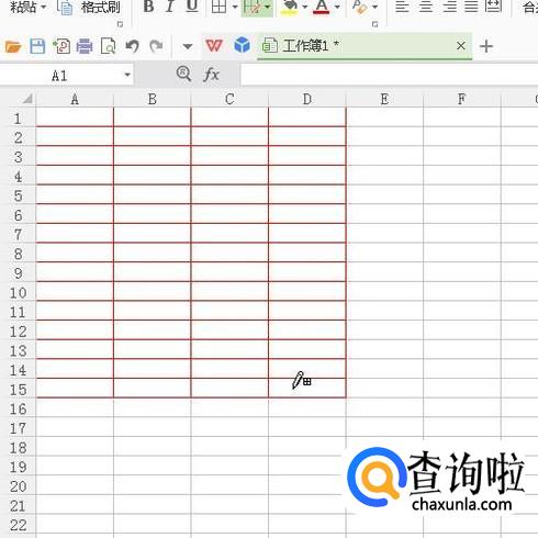 这时,鼠标就变成了一支笔样式,鼠标在A1:D15这区域的表格拖动,即绘制出红色的边框。
