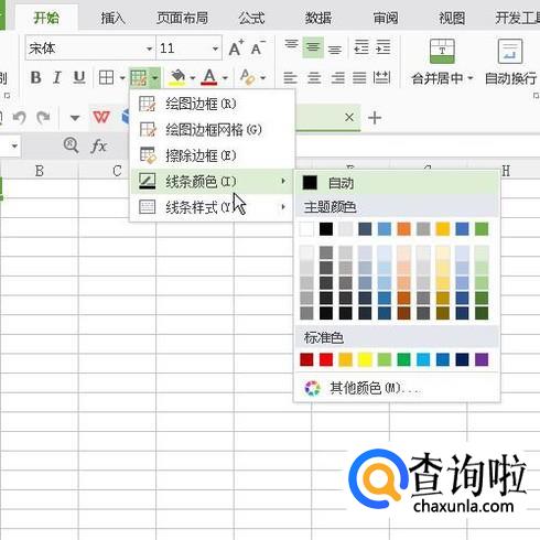 在弹出的菜单中,把鼠标放在线条颜色这里,右侧弹出颜色面板,选择红色。