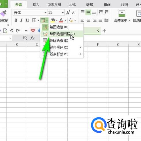 再次点击按钮,弹出菜单,再点:绘制边框网格。