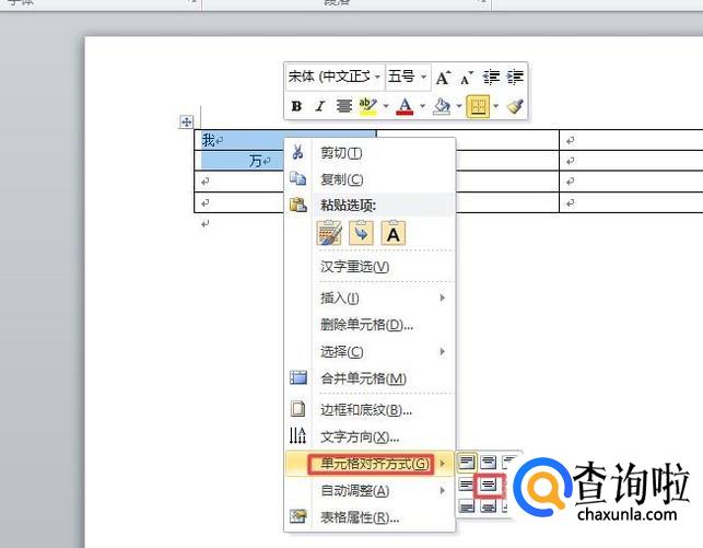 然后我们右击选择单元格对齐方式,在后面就是文字对齐的方式了,我们点击中间的那个选项;