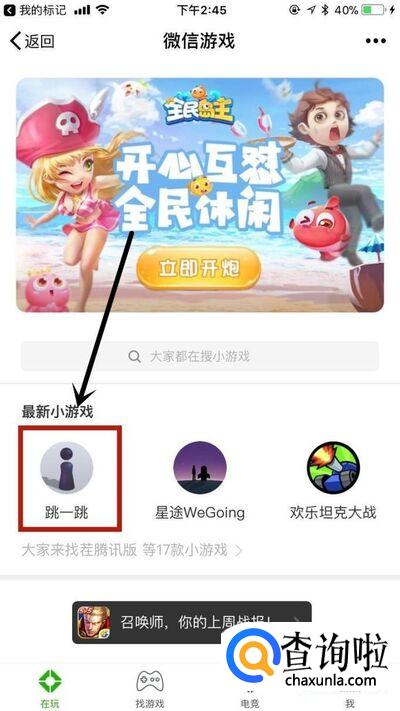 你也可以在屏幕主界面下滑找到微信跳一跳小程序,只要你有玩过。