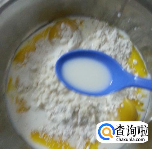 鸡蛋三到四个、牛奶150ML、白砂糖、面粉。