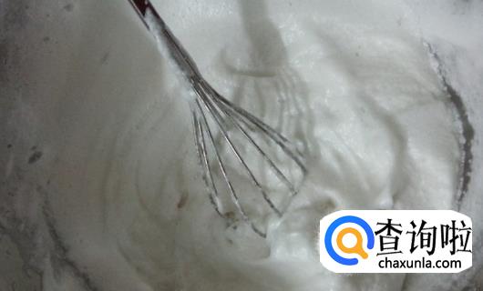 电动打蛋器当然最省力,如果没有就用手动打蛋器,如果都没有就用三根筷子打。将2~3汤匙的白糖加到蛋清里,再加入一点盐,朝一个方向划圈打,直到打发成盆子倒扣蛋白都不会掉下来的状态
