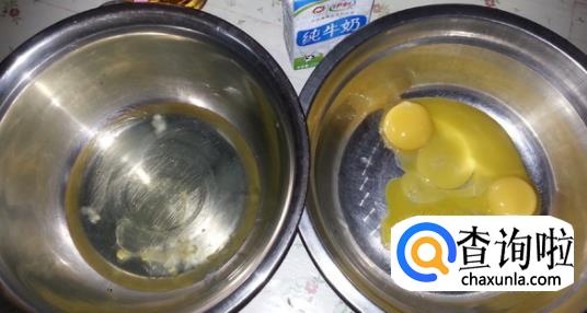 分离蛋黄和蛋清,将其分别放到干净无油无水的大碗中