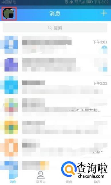 首先,我们打开我们的手机,然后我们打开我们的QQ,之后我们点击左上角的头像;