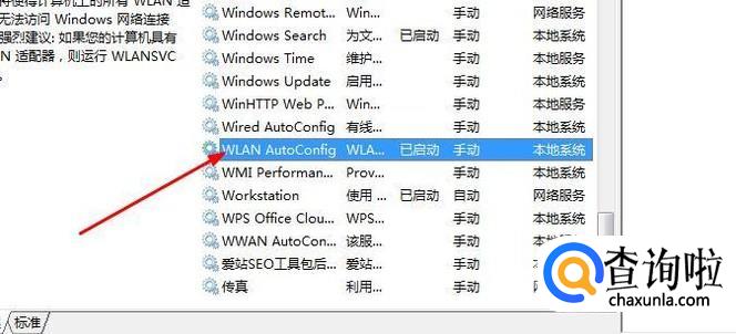 点击服务后右边会出现服务列表,我们找到“WLAN AutoConfig”这个服务选项。