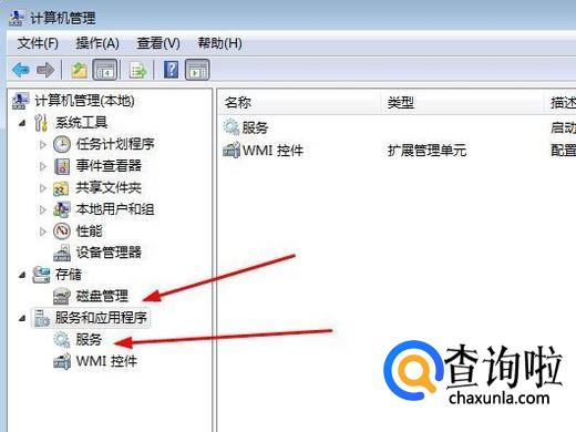 打开计算机管理窗口后,我们在“服务和应用程序”栏目内找到“服务”的选项后我们点击一下。