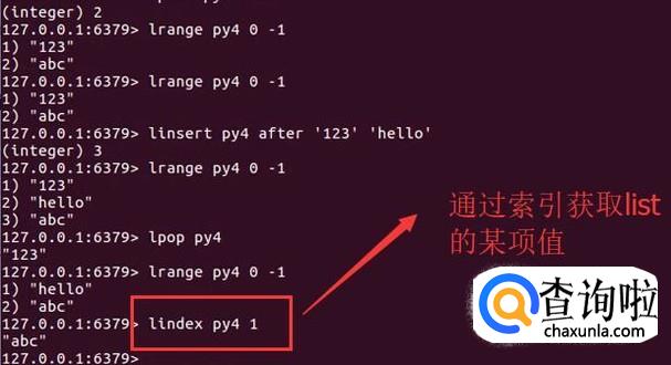 最后我们还可以通过索引取list数组中的某一项的值,如下图所示,通过lindex命令即可实现