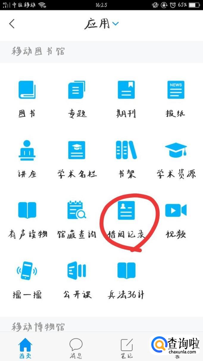 向上滑动,在移动图书馆里找到“借阅记录”,即可查询到借书记录。