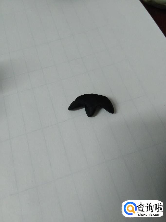 用黑色捏一个小字,粘在娃娃头上,当做小娃娃的头发。