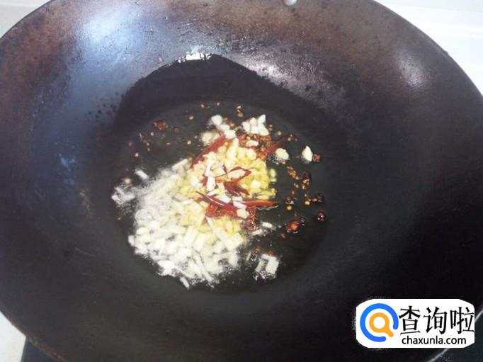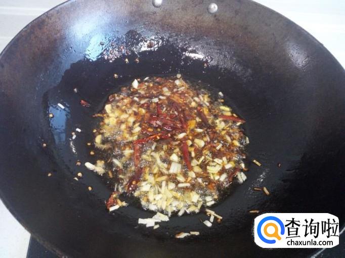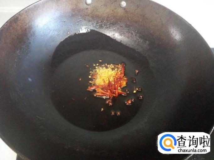 锅内放入油加热,油热后放入花椒爆锅,放入葱,姜,蒜,炒出香味。