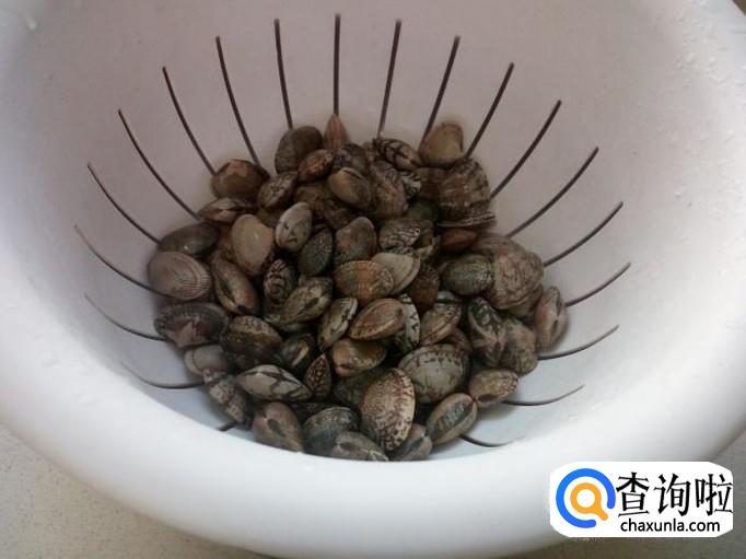 花蚬子先用水浸泡,吐一下沙子。然后用水冲洗干净,控干水分。