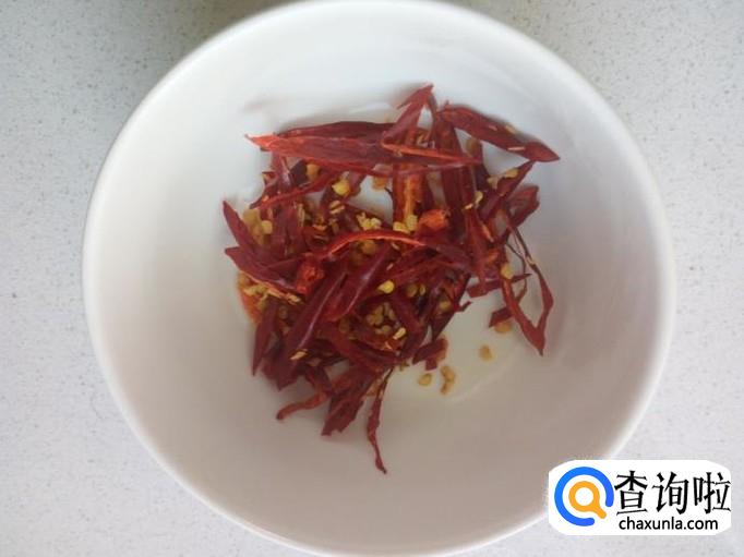 红干尖椒切成丝,切好葱,姜,蒜,备用。