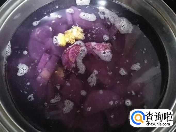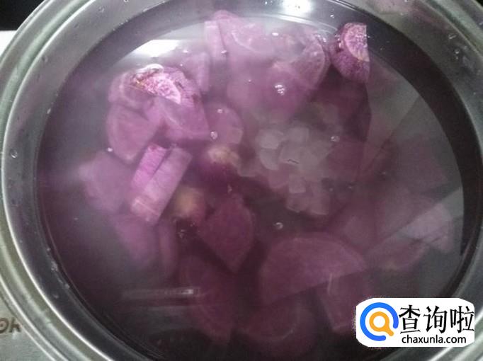 糖不宜过多,紫薯煮熟即可,不必煮烂;