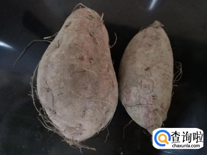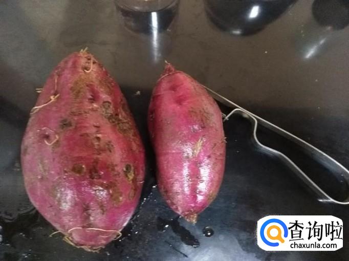 两个小一些的紫薯,大概三人份,洗掉表面的泥土;