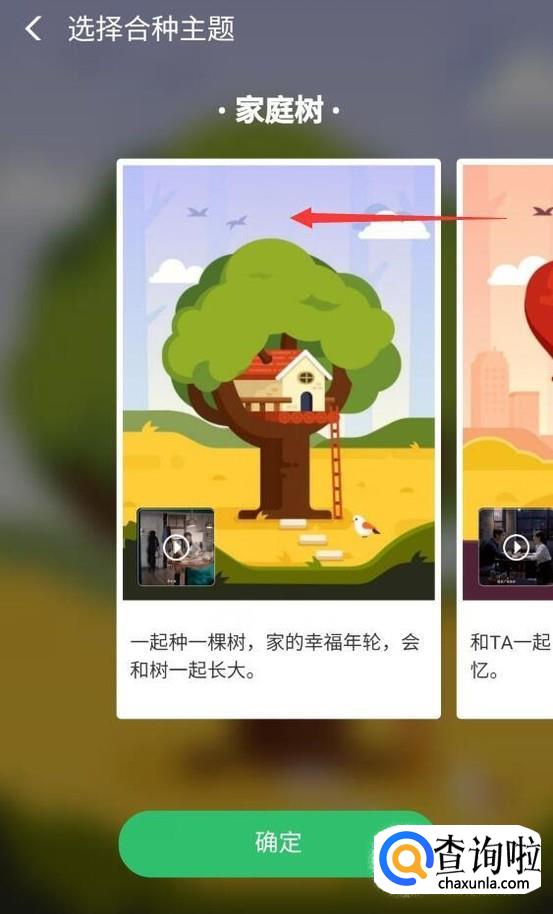 单击发起合种按钮后会进入到如图所示,此时我们选择好合种主题,比如是家庭树,还是朋友林,合种主题往左滑动可以看到更多主题。