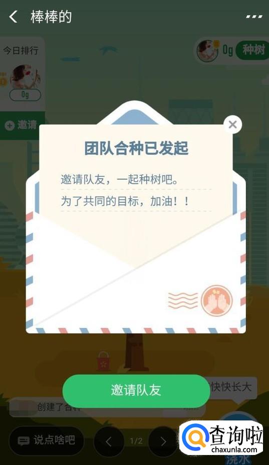 接下来会跳转到如图所示面板,此时会提示我们团队合种已发起,我们只需要去邀请需要一起合种的好友或同事即可。