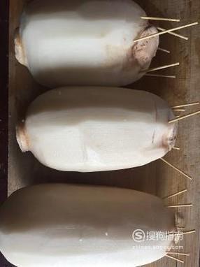 把切下来的藕节盖回莲藕的两头并用牙签固定住