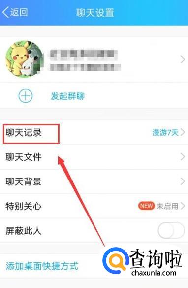 进入下一页面之后,点击“聊天记录”,进入下一页面,如图所示。