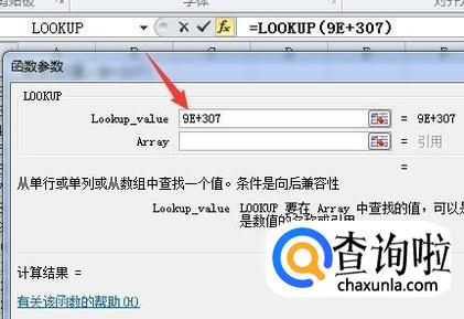 在第一个参数框中输入9E+307,这是一个科学记数法,意思是9*10^307。代表很大的数。