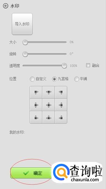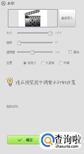 这个时候你可以编辑水印的相关内容:导入水印的样本以及它的透明度等设置。