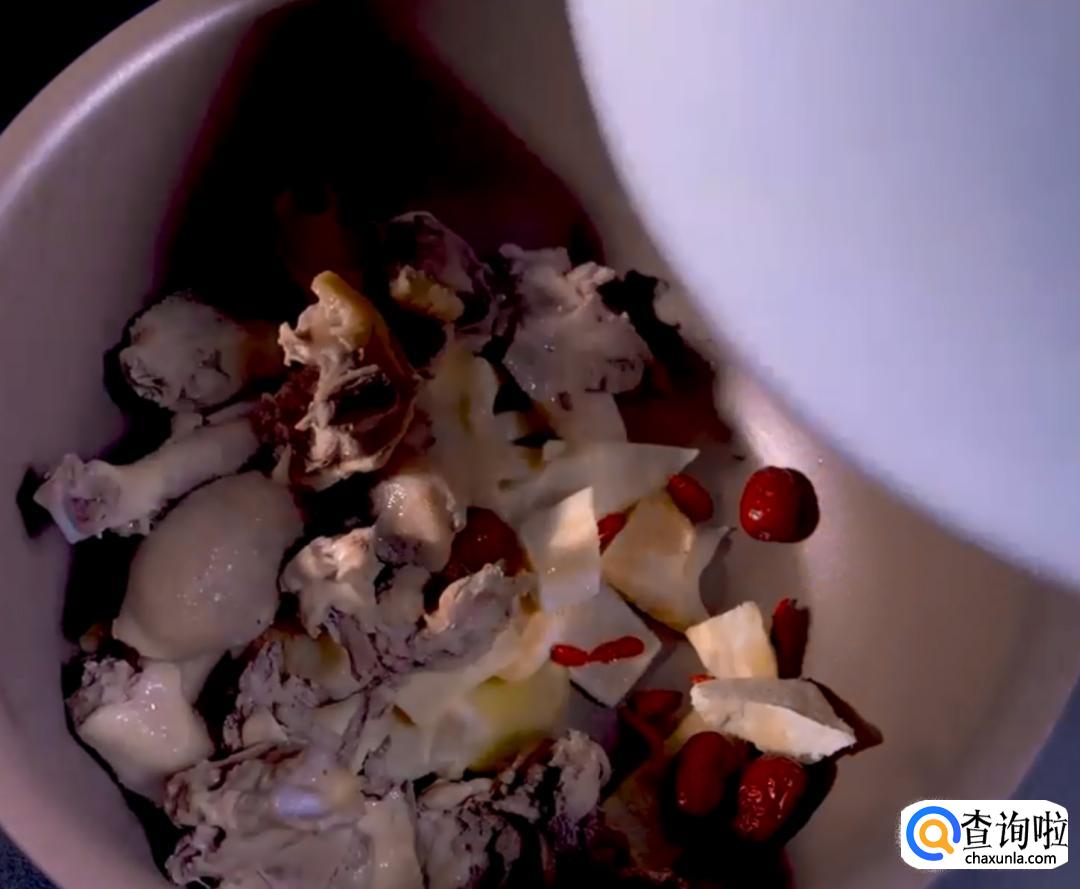 把红枣和枸杞放到一个新煲中,加水,再把鸡肉直接放进去,盖好盖子,小火炖鸡肉。五十分钟左右就差不多了。