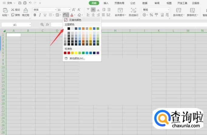 之后选择上面的“颜色填充”选择“白色”,就是将一整个表格的底纹都变成白色的,这个时候我们也看不见原先的单元格的格子。
