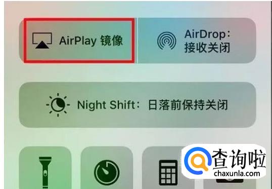 从手机屏幕的底部向上滑动拉出“控制界面”,点击“控制界面”里的“AirPlay镜像”选项。