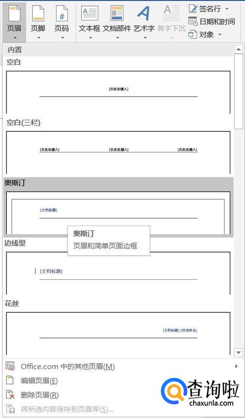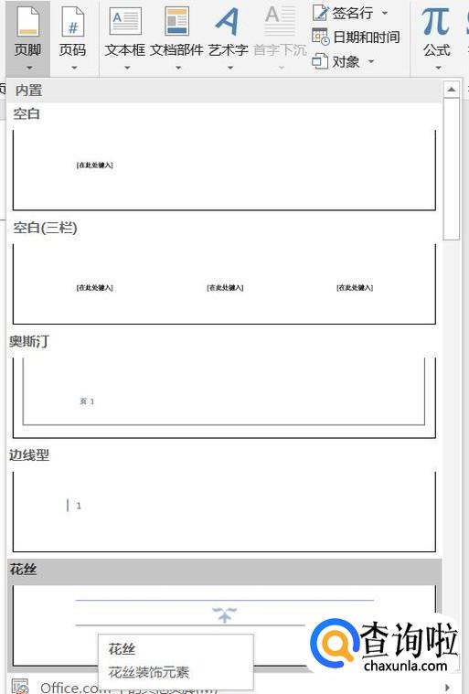 点击页眉选择您需要的款式,同上,点击页脚选择您要的款式,如果你页眉和页脚选择的是不同的款式,自然就不一样。