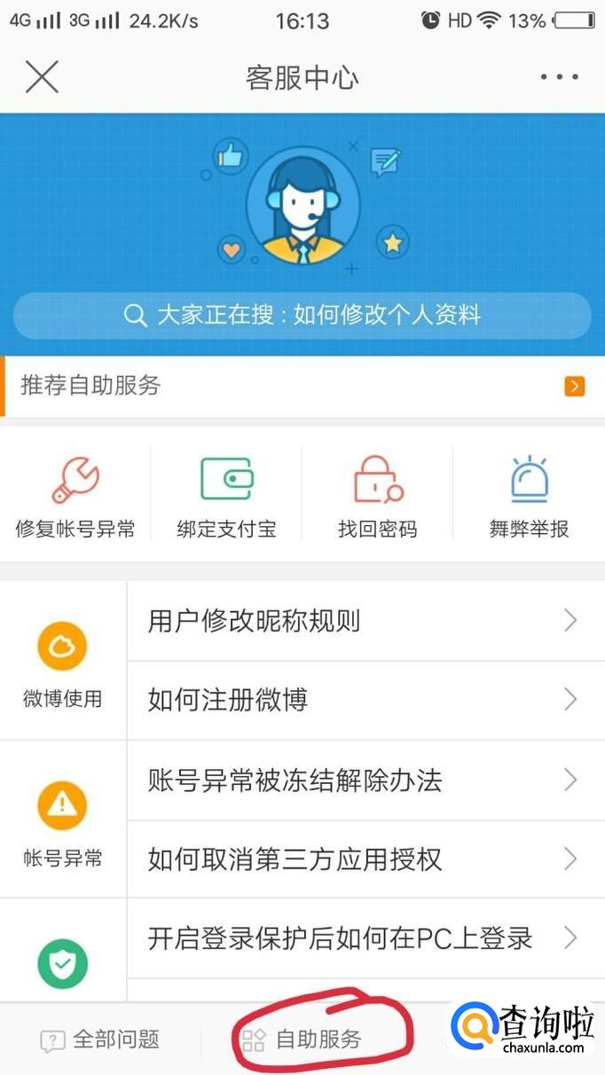 跳转到以下界面,点击“客服中心”,进入后,找到下方中间部分的“自助服务”。