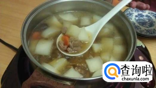 将牛腩放入炖锅中,加水,白萝卜块,老姜,慢火炖一个半小时,加盐,起锅