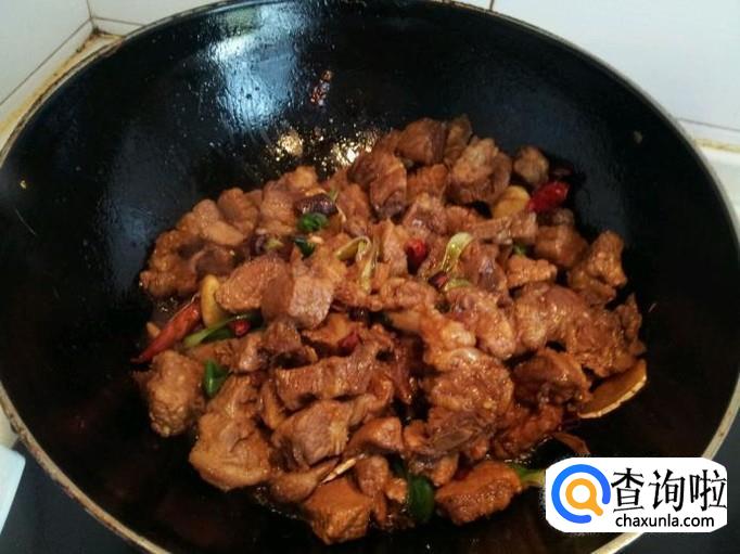 锅中加油,油8分热时加入牛腩,爆炒,然后加入适量辣椒,老抽,翻炒