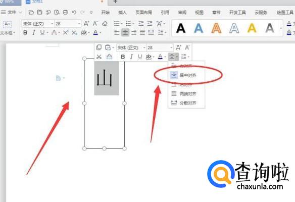 然后输入【山】,再修改文字的大小,设置成居中,如下图所示: - 04