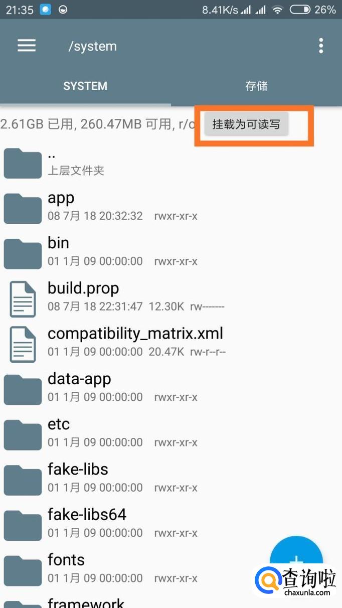 这里我们的手机首先要root,然后去下载一个re文件管理器,应用商店没有,请浏览器搜索下载,然后打开,点击"挂载为可读写"。