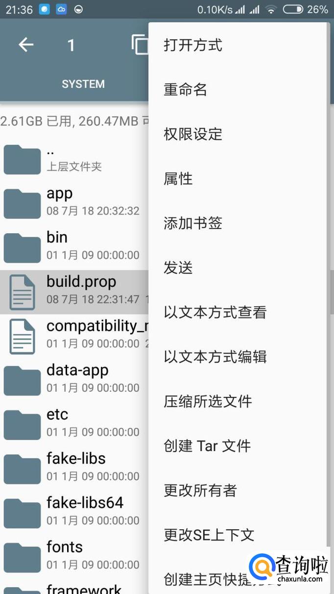长按"build prop"文件夹 然后点击右上角出现的"以文本方式编辑"。