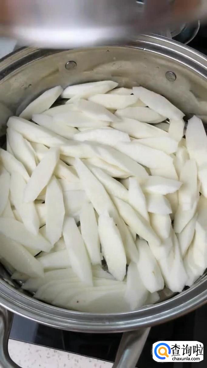 然后把处理好的山药片放入锅中蒸15分钟,如下图所示。