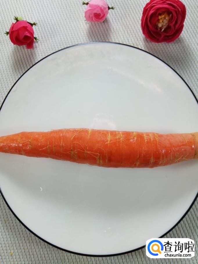 准备一个白萝卜,一根胡萝卜,适量青椒,洗净后放入盘中备用。