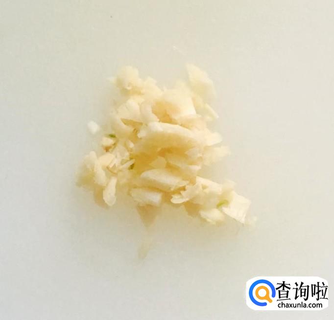 大蒜适量剥去外皮清洗干净,用刀拍扁后切成蒜末