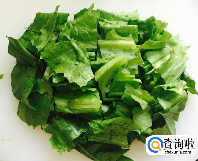 浸泡过的油麦菜控干水分后切成长短均匀的段状