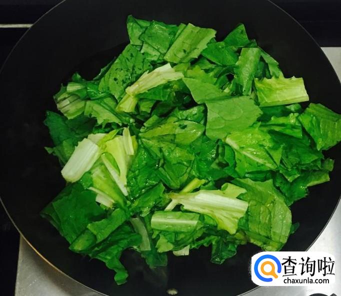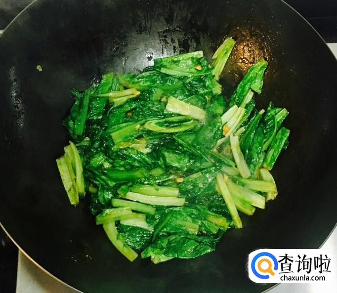热锅加入适量的花生油,倒入油麦菜段翻炒均匀