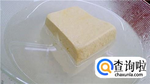 豆腐放在清水里面浸泡半小时后捞出来,然后切块,块不要太大了,这样不容易入味的。