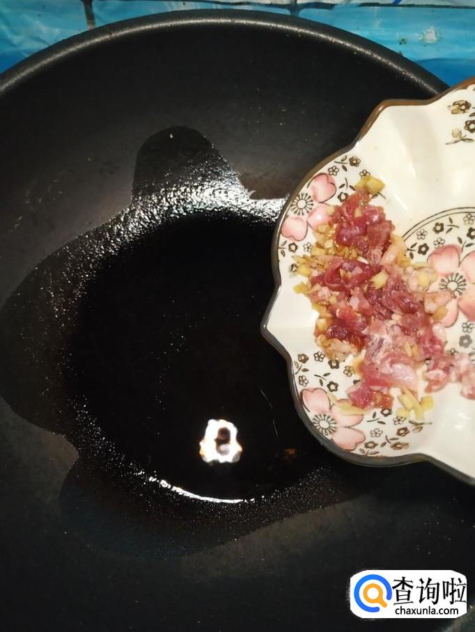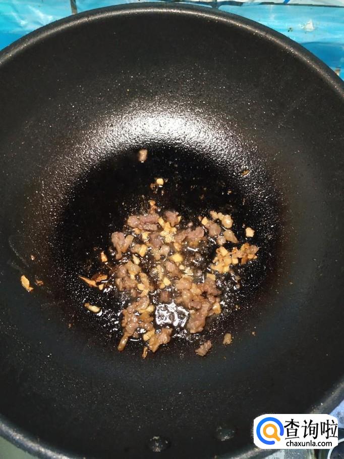 炒锅中放入适量油,油热后将牛肉末放入锅中炒香,然后盛出备用,