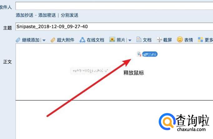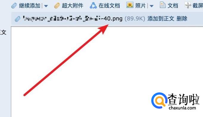 还有另外一种更方便的操作,就是直接把要上传的附近拖到邮件内容区,然后松开鼠标,就会自动上传了。