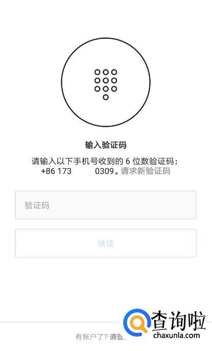 输入手机号码点击继续,然后输入验证码。