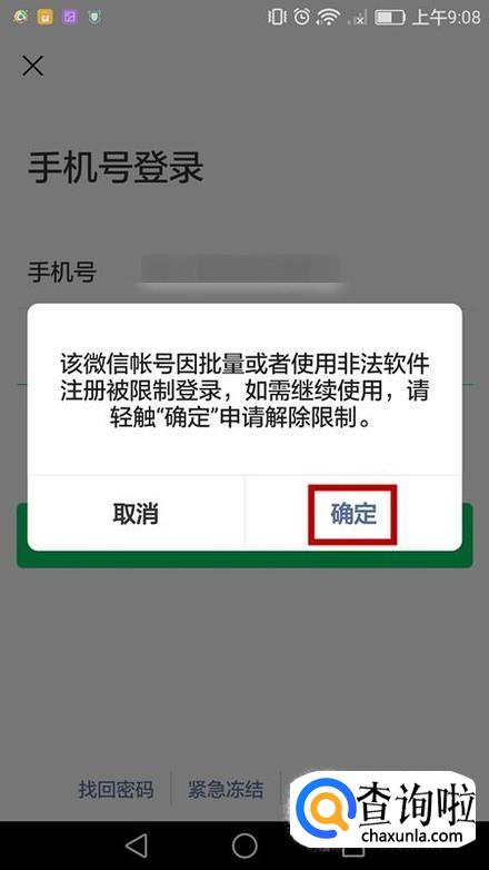 首先用登陆自己的微信号,才发现是被封了。如图所示。